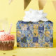 Diversão de papel em tons de azul e amarelo com corações. Consulte placas de nota correspondentes, canecas e outros com padrões semelhantes ou iguais
