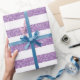Tendência e diversão com brilho de brilho. Papel de enrolar Stripes de aparência. Este design apresenta um padrão de faixa de aparência brilhante e falso em roxo. Adicione texto a este design para lhe dar um toque pessoal.