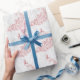 Envolva presentes para a noiva e o noivo com um rolo de papel de enfeite de vitelo rosa. O design de papel de enrolamento apresenta uma cinza clara e uma videira branca, com um pavão rosa vibrante e robusto. Papelaria de casamento e presentes disponíveis com esta design também.