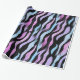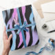 Papel de embrulho na moda com padrão de impressão abstrato zebra em cores pretas, azuis, violetas e cor-de-rosa, feito da minha pintura acrílica original.