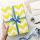 Papel de embrulho concebido com um padrão de fevron amarelo e branco em grande dimensão. Você pode mudar o amarelo para uma cor diferente.