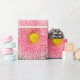 Envolvimento brilhante com flores margaridas cor-de-rosa e fundo personalizado para qualquer ocasião= Linda embrulho de presente.