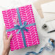 Papel de enrolamento Chevron, branco em rosa quente. Personalize a cor de fundo rosa-quente entre outras opções.