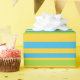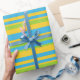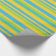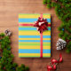 Um rolo de Giftwrap com um padrão riscado ousado em azul Turquesa, Verde Folha e Amarelo Ouro. Parte da coleção Posh & Painterly 'Daisy Chain'.