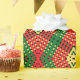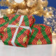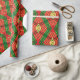 Este plástico único tem um padrão de tecelagem linear de diamante criado digitalmente. É feito com as cores predominantes verde-vermelho e amarelo. Isso vai adicionar uma aparência festiva distintiva ao seu dom.