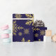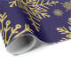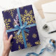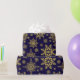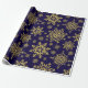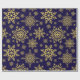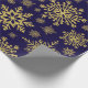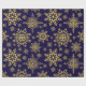 Folga de papel embrulhado em flocos de neve com brilho Dourado. Flocos de neve com brilho Dourado em papel de embrulho azul profundo. Um padrão uniforme de flocos de neve em diferentes designs e formas faz com que este papel de embalagem, clássico e tradicional, seja eterno. Um elegante design de inverno, minimalista e simples. Flocos de neve em ilustração adequada para o Natal, eventos festivos e Natal. Este papel de embrulho ajustado a maior parte das vezes na época de inverno, tanto no Natal como nos aniversários de ano para ano. Disponível em diferentes tamanhos e combinações de cores.