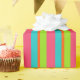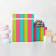 Tiras brilhantes de limão, turquesa, laranja e cor-de-rosa decoram este papel festivo de embrulho. Este papel de embrulho é excelente de aniversário, chá de fraldas, chá de panela, graduação, etc...O design é da arte original.