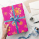Presente Papel de enrolamento cor-de-rosa com flocos de nev