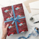 Saudação cristã de Natal mostrando Bíblia aberta contra a seda vermelha com flocos de neve. Os produtos correspondentes são: selos postais, etiquetas de devolução, autocolantes e cartão de saudação de impressão frente e verso e estilo aberto e fechado.- papel de embrulho