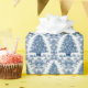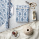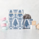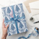 Este bonito papel de embrulho apresenta uma árvore de Natal Toile azul sobre um fundo branco. A imagem é gerada por IA.