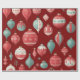 O papel de embrulho decorado com bola de Natal é festivo, colorido e perfeito para pôr o humor de Natal. Os designs típicos incluem bolas de Natal de diferentes tamanhos e cores, frequentemente aperfeiçoadas com detalhes brilhantes ou metálicos, como realces dourados ou prateados.