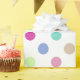 Você vai adorar as enormes bolinhas pastéis enchendo este papel de embrulho! Uma mistura de menta, fuschia, e coral iluminou qualquer presente.