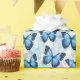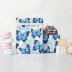 Este papel de embrulho de presente é mostrado em uma adorável impressão de borboleta azul. Personalize este papel ou comprar como está. Imagem licenciada