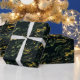 Este papel de embrulho apresenta um luxuoso design de espiral de mármore escuro com acentos de ouro e verde, perfeito para adicionar um toque elegante a qualquer presente.