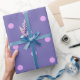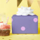 Invólucro de presente de lavanda pulverizado com bolinhas cor-de-rosa grandes.