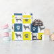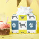 Silhueta de cachorro-beagle em linhas de abstrato amarelo, azul e preto. As impressões da pata alternando com a silhueta do cão fazem um padrão legal. Os presentes de Beagle para amantes de cães parecerão excelentes embrulhados neste papel de embrulho legal.
