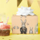 Deixe que o Coelho Dapper e o amigo dele embrulhem seus presentes de primavera e Páscoa com um fundo de pêssego e um padrão espelhado.