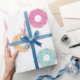 Papel de embrulho com formato de rosquinha giro para aniversários, chás de fraldas e festas! Para mais ideias bonitas de decoração de rosquinhas, veja nossa Coleção de Festas de Rosquinha.