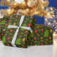 Papel de enrolamento verde das árvores de Natal e ornamentos