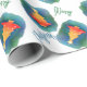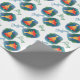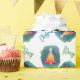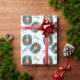 Papel de embrulho festivo de Natal, com um padrão colorido de árvore de Natal de aquarela. Feliz Natal, em texto azul e verde, pode ser personalizado para ler o que você quer.