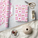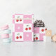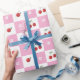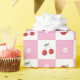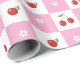 Padrão de invólucro bonito com cerejas vermelhas frescas, uma pequena flor e um padrão de verificador branco e rosa.Perfeito para qualquer ocasião (aniversários, chás de fraldas, etc.). © ArianeC Ilustrações-Todos os direitos reservados