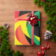 Este papel de embrulho festivo apresenta um padrão abstrato tridimensional de luas da crescente do arco-íris em cores vermelha, laranja, amarela, verde, azul e roxa sobre fundo preto.