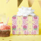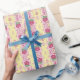 Um bonito estilo de vintage embrulhando papel com rosas cor-de-rosa num padrão floral amarelo.