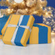 Presente Papel de enrolamento das tiras amarelas do céu azu