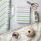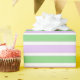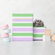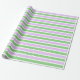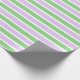 Um papel de embrulho projetado com um padrão listrado branco, lilás e verde.