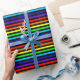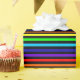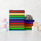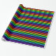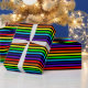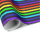 Papel de enrolamento com design de listras em negrito. As cores alternam entre as faixas pretas e arco-íris (vermelho, laranja, amarelo, verde, azul, índigo e violeta).