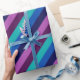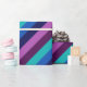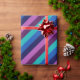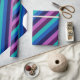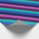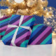 Um rolo de papel de embrulho com um padrão colorido de tiras diagonais em legal tom, azul-oceano, azul-marinho, roxo de ameixa e lavanda.