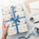 Faça um salto com este divertido papel embrulhado com o tema do peixe, com um padrão de um peixe saltante e um peixe laranja menor, em estilo aquarela. Com a saudação de 'Cartões de aniversários nadando no seu caminho', o presente pode ser personalizado com um nome para um toque individual.