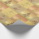 Este papel de embrulho apresenta uma imagem brilhante e estilizada de uma árvore de Natal acompanhada do texto "Felizes Feriados". O fundo é constituído por azulejos quadrados concebidos em matizes de ouro e rosa.