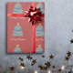 Um papel de enrolar vermelho com uma árvore de Natal kawaii. Será perfeito para enrolar seus presentes, especialmente os presentes de seus filhos!