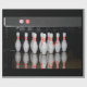 Um rolo de papel de embrulho com uma foto de pinos de boliche.
