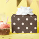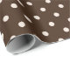 Este papel de embrulho de bolinhas é desenhado em cores castanhas e brancas.