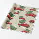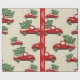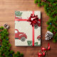 O caminhão de Natal embrulhando papel com carros vintage vermelhos em fundo bege kraft com flocos de neve. Adicione seu próprio texto com a ferramenta Zazzle fácil de usar! Visite o compro para ver toda a coleção.