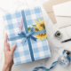 Papel de embrulho de chá de fraldas de girassol de Gingham azul.