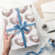Chá de fraldas, ou celebração embrulhando papel com uma coroa de flores e calçados para bebês. Obrigados para a Creative Fabrica para alguns dos elementos na design.