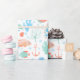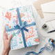 Papel de enrolamento com ilustrações da vida do mar a aquarelas em cores de coral. Veja na nossa loja mais papel de embalagem adequado para aniversários e chás de fraldas infantis.