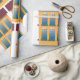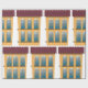 Uma casa de dois andares com muitas janelas. Este design parece realmente eficaz nestes papéis de enrolamento