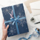 Papel de embrulho azul Elegante, marinho, com flocos de neve dourados em shimmering, para sofisticação de festas de férias.