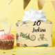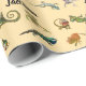 Papel de embrulho de festa de aniversário de répteis, brilhante e colorido, com fotos de vários lagartos e lagartos em cores brilhantes e o nome da criança de aniversário e da idade. Tanto o nome quanto a idade podem ser personalizados. O papel se coordena com uma gama de suprimentos de festas para esta festa de aniversário de criança do templo réptil.