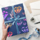 Diamantes cor-de-água, cor-de-rosa, roxo, amarelo, coloridos, com papel de embrulho.