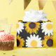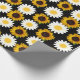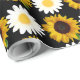 O papel colorido de embrulho de girassol é bem trabalhado com fundo preto perfeito para embrulhar presentes de aniversário, presentes de casamento e presentes para comemoração universal.