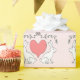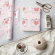 Folha de papel para presentes - coelhos, corações e vinhas em chão rosa. Design de ilustração e padrão original do artista Foster Cranz.