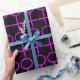 Este papel de embrulho incrível foi projetado para lésbicas. Ele apresenta dois símbolos femininos cor-de-rosa, lado a lado. O fundo é preto.