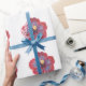 Flor de hibisco pintada com a mão azul, vermelha, pintura a lápis floral.
