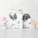Este presente contém folhagem verde da floresta com bagas vermelhas de amora-branca num fundo branco brilhante. Este padrão se coordena com a Coleção de Casamentos de Berry de inverno.