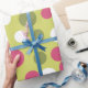 Bolinhas cor-de-rosa-claro e verde decoram este papel de embrulho festivo. O design é da arte original.